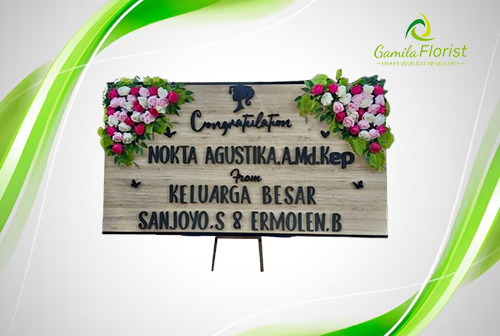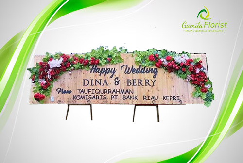 Gamila Florist Lampung, penyedia bunga papan terpercaya di Lampung untuk berbagai acara pernikahan, duka cita, grand opening dan ucapan selamat.